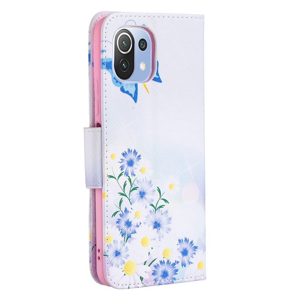 Θήκη Xiaomi Mi 11 Lite / Mi 11 Lite 5G OEM Blue Butterfly & Flowers με βάση στήριξης, υποδοχές καρτών και μαγνητικό κούμπωμα Flip Wallet από συνθετικό δέρμα και TPU