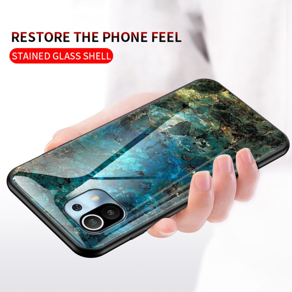 Θήκη Xiaomi Mi 11 Lite 4G / 5G OEM σχέδιο Marble με Πλάτη Tempered Glass TPU σμαραγδί