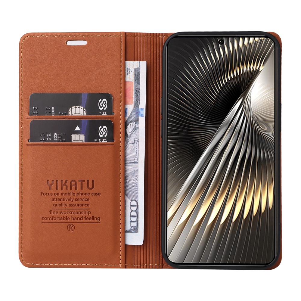 Θήκη Xiaomi Poco F6 5G YIKATU Folio Series με βάση στήριξης, υποδοχή καρτών και μαγνητικό κούμπωμα Flip Wallet από συνθετικό δέρμα και TPU καφέ ανοιχτό