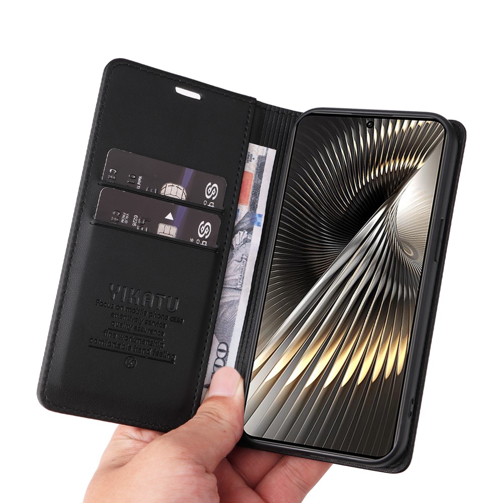 Θήκη Xiaomi Poco F6 5G YIKATU Folio Series με βάση στήριξης, υποδοχή καρτών και μαγνητικό κούμπωμα Flip Wallet από συνθετικό δέρμα και TPU μαύρο