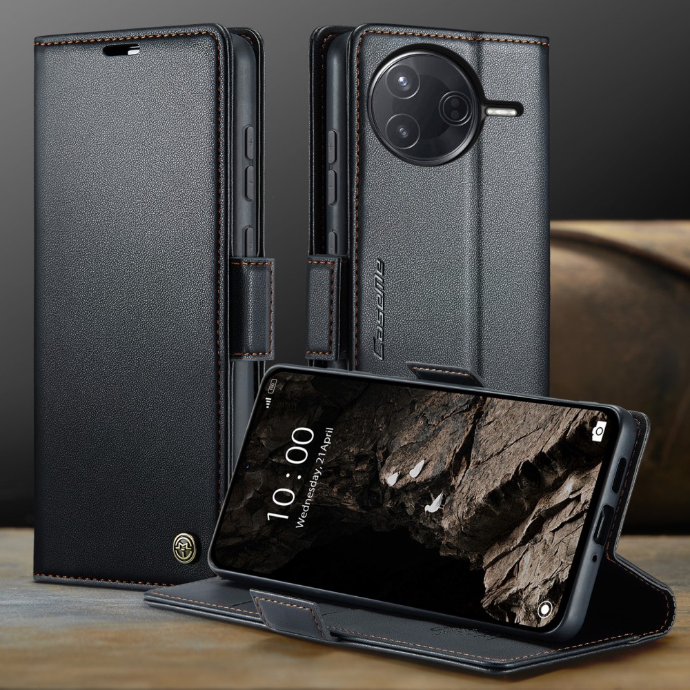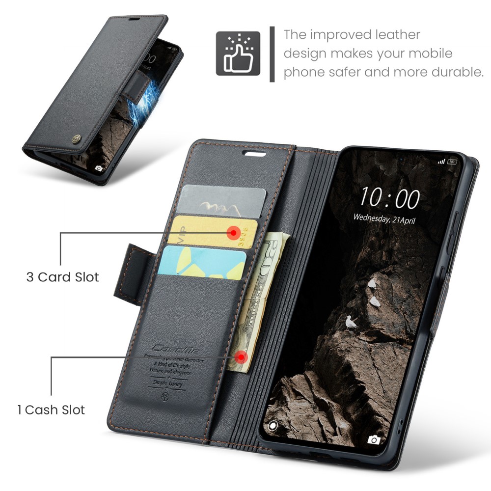 Θήκη Xiaomi Poco F7 Pro 5G CASEME 023 Series Πορτοφόλι με βάση στήριξης, υποδοχές καρτών και μαγνητικό κούμπωμα από συνθετικό δέρμα και TPU μαύρο
