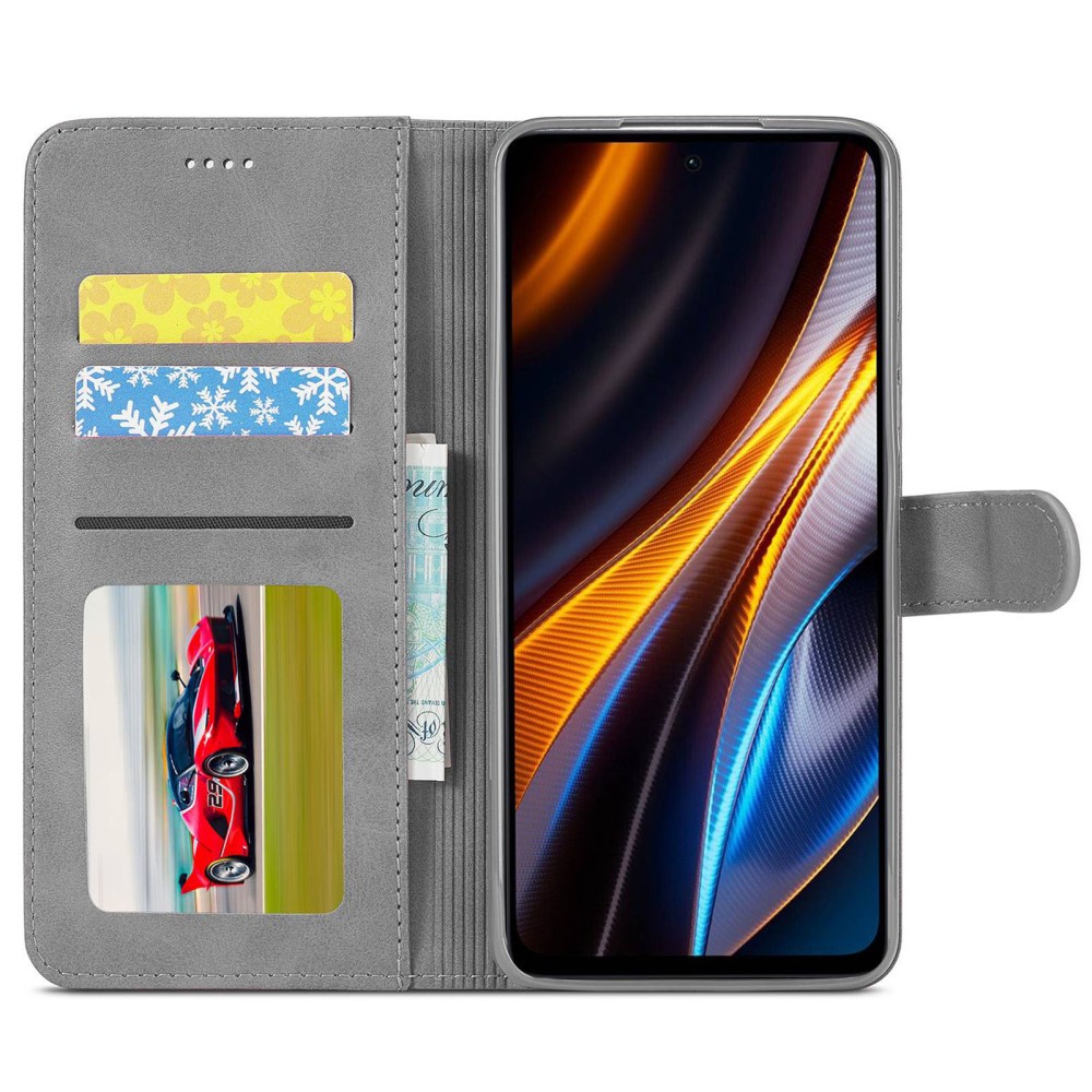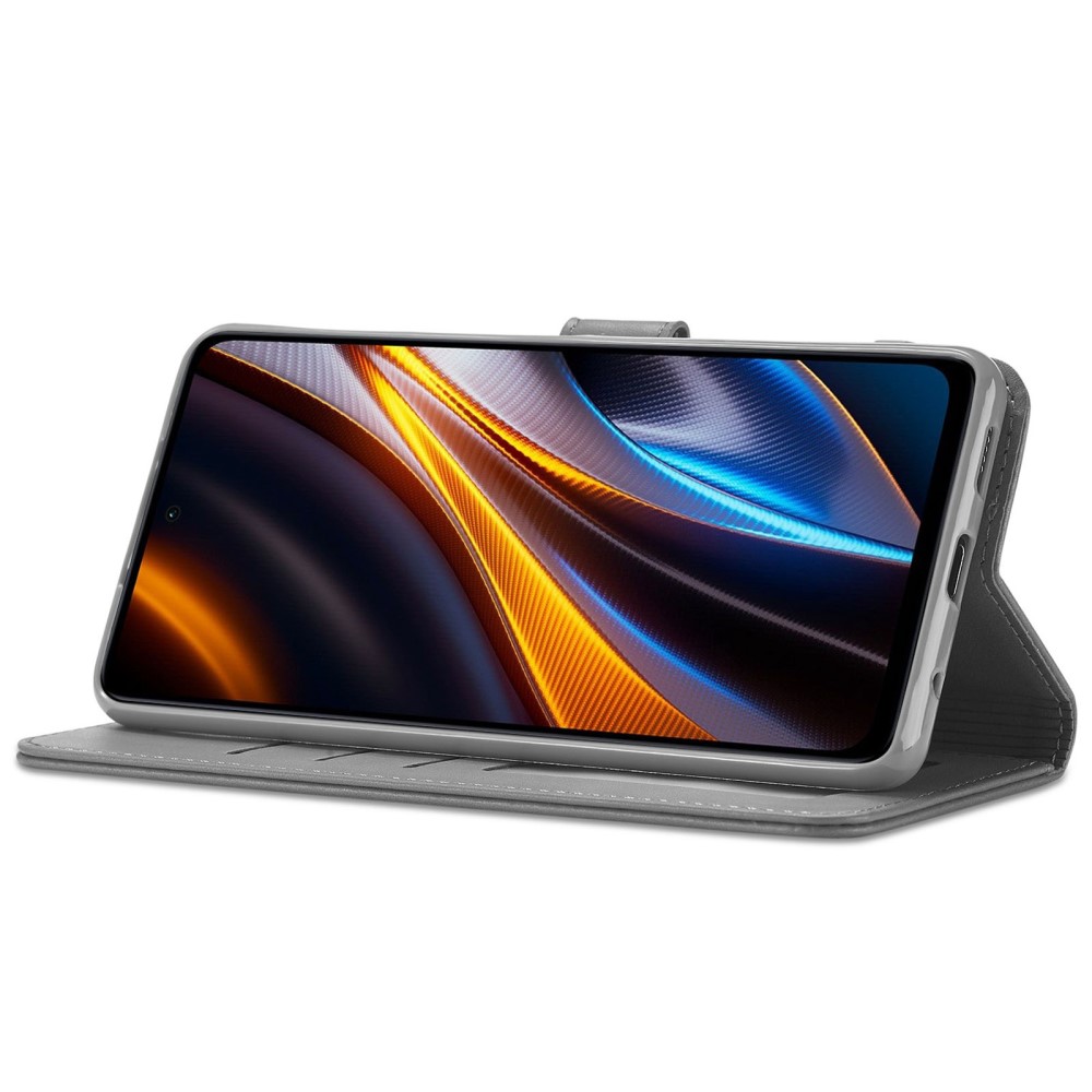 Θήκη Xiaomi Poco M5 LC.IMEEKE PU Leather Series με βάση στήριξης, υποδοχές καρτών και μαγνητικό κούμπωμα γκρι