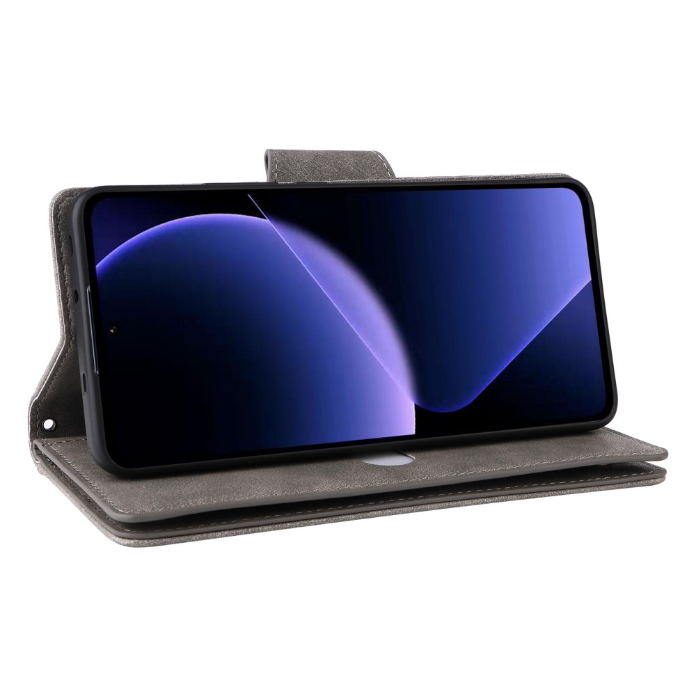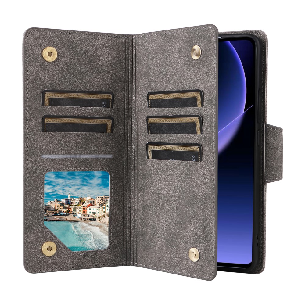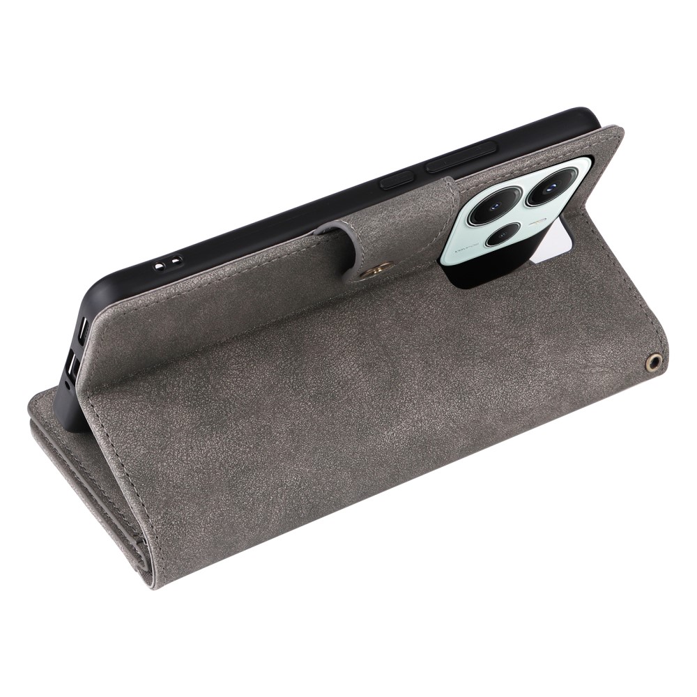 Θήκη Xiaomi Poco M7 Pro 5G OEM Leather Wallet Πορτοφόλι με βάση στήριξης, υποδοχές καρτών με φερμουάρ και μαγνητικό κούμπωμα από συνθετικό δέρμα και TPU γκρι