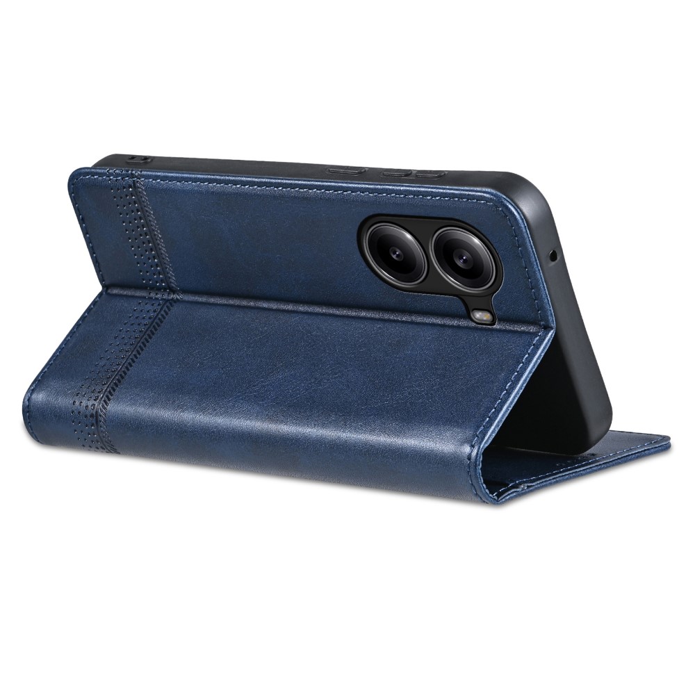 Θήκη Xiaomi Poco X7 Pro 5G AZNS Litchi Retro V4 Texture Leather με βάση στήριξης, υποδοχές καρτών και μαγνητικό κούμπωμα μπλε