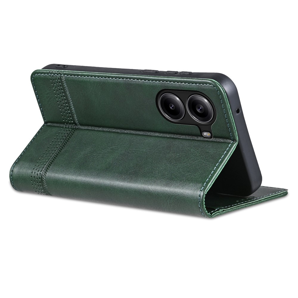 Θήκη Xiaomi Poco X7 Pro 5G AZNS Litchi Retro V4 Texture Leather με βάση στήριξης, υποδοχές καρτών και μαγνητικό κούμπωμα πράσινο