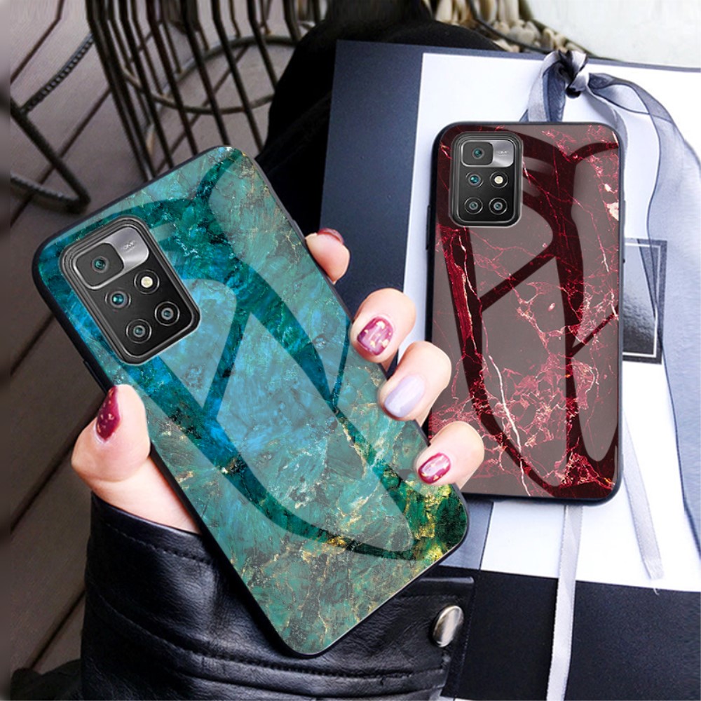 Θήκη Xiaomi Redmi 10 / Redmi 10 (2022) OEM σχέδιο Marble με Πλάτη Tempered Glass TPU μαύρο
