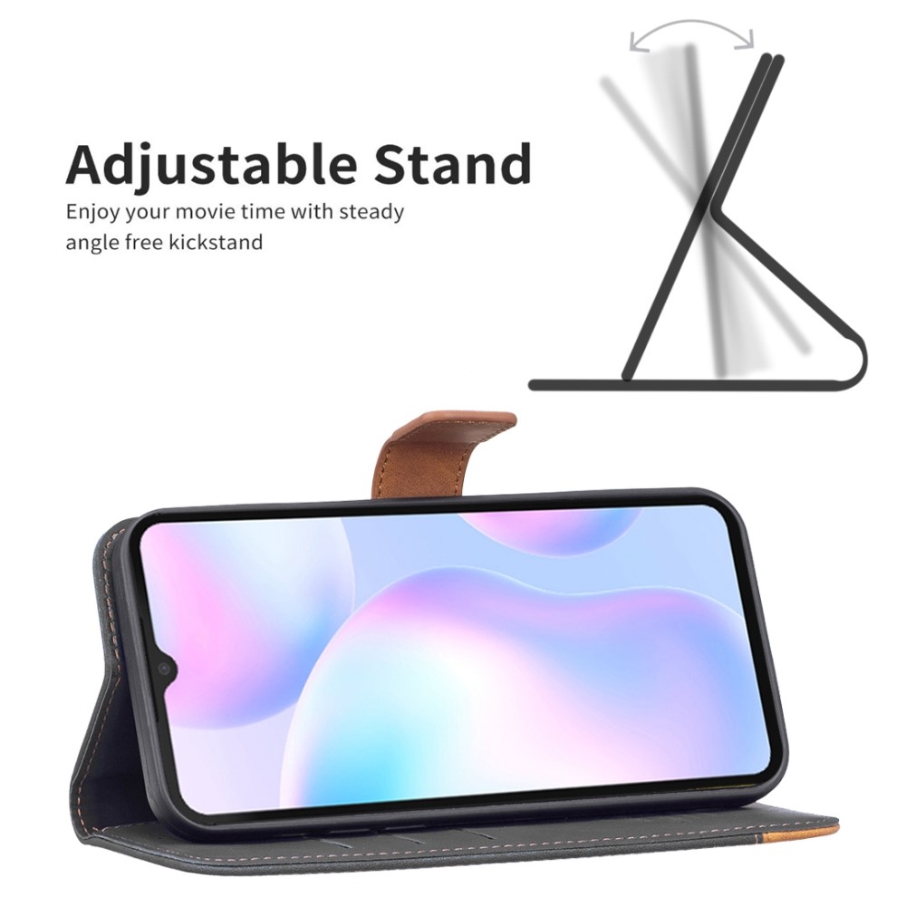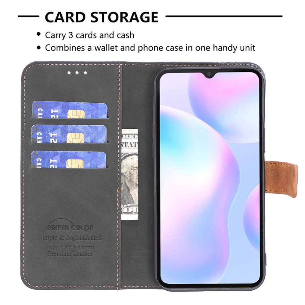 Θήκη Xiaomi Redmi 10A BINFEN COLOR Leather Wallet Double Stitching Lines v2 με βάση στήριξης, υποδοχές καρτών και μαγνητικό κούμπωμα μαύρο