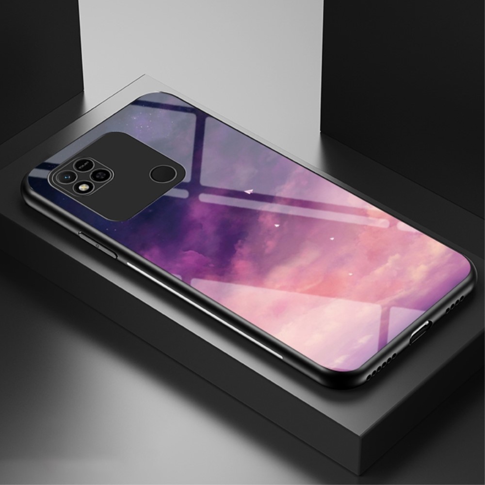 Θήκη Xiaomi Redmi 10A OEM σχέδιο Fantasy Sky με πλάτη από Tempered Glass και εσωτερικό TPU – Μωβ / ροζ