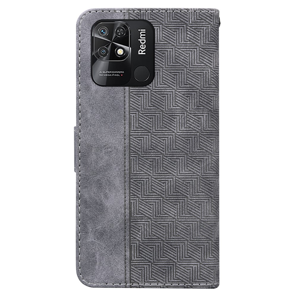 Θήκη Xiaomi Redmi 10C OEM Leather Wallet Case Geometry Style με βάση στήριξης, υποδοχές καρτών και μαγνητικό κούμπωμα Flip Wallet από συνθετικό δέρμα γκρι