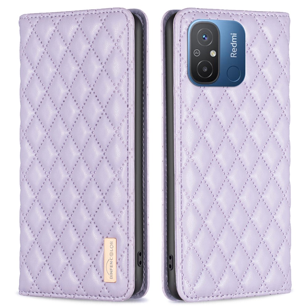 Θήκη Xiaomi Redmi 12C BINFEN COLOR Rhombus Pattern Series με βάση στήριξης, υποδοχές καρτών και μαγνητικό κούμπωμα μωβ