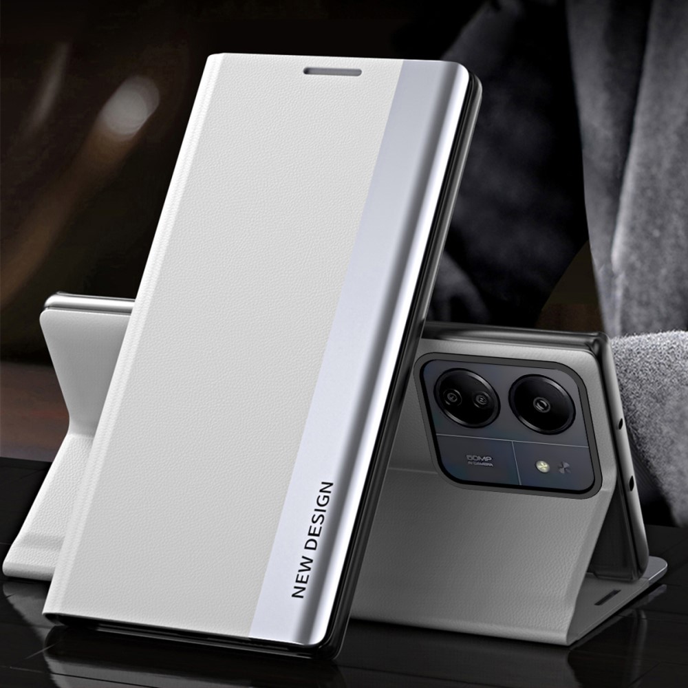 Θήκη Xiaomi Redmi 13C / Poco C65 New Design Leather Stand Cover από συνθετικό δέρμα λευκό
