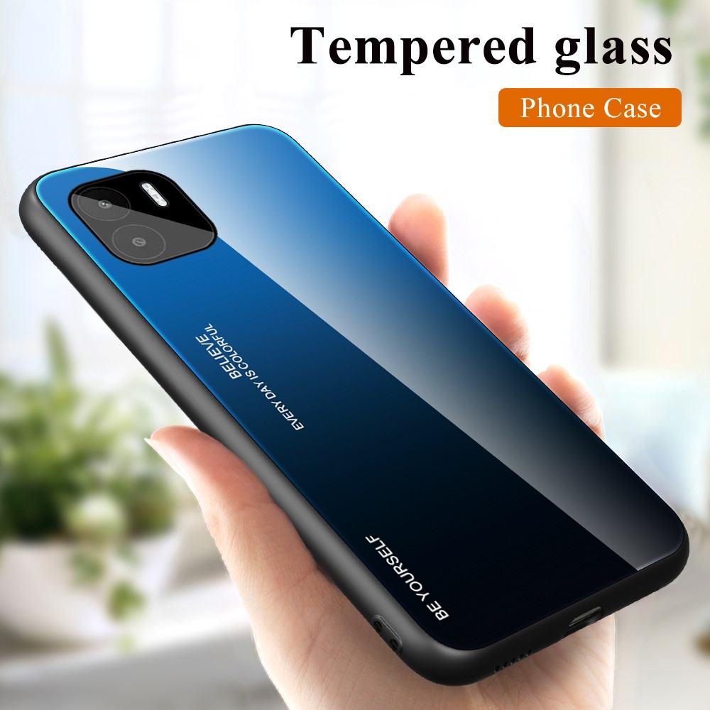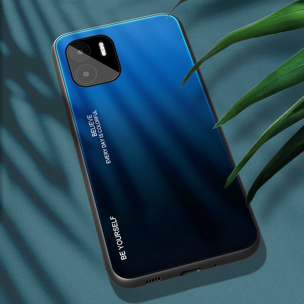 Θήκη Xiaomi Redmi A1 / A2 OEM Gradient Color Laser Carving Tempered Glass Πλάτη TPU μαύρο / μπλε
