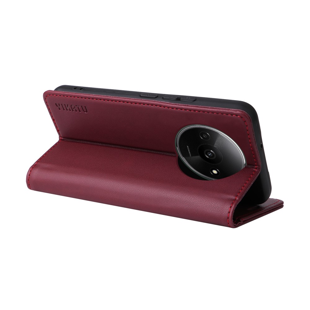 Θήκη Xiaomi Redmi A3 YIKATU Folio Series με βάση στήριξης, υποδοχή καρτών και μαγνητικό κούμπωμα Flip Wallet από συνθετικό δέρμα και TPU κόκκινο σκούρο