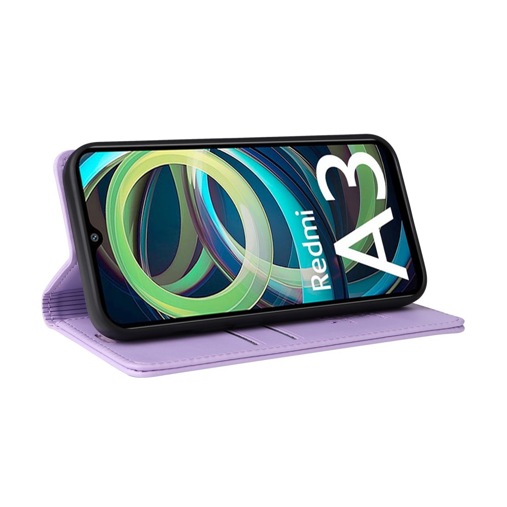 Θήκη Xiaomi Redmi A3 YIKATU Folio Series με βάση στήριξης, υποδοχή καρτών και μαγνητικό κούμπωμα Flip Wallet από συνθετικό δέρμα και TPU μωβ ανοιχτό