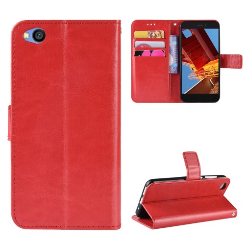 Θήκη Xiaomi Redmi Go OEM Crazy Horse Leather με βάση στήριξης, υποδοχές καρτών και μαγνητικό κούμπωμα Flip Wallet δερματίνη κόκκινο