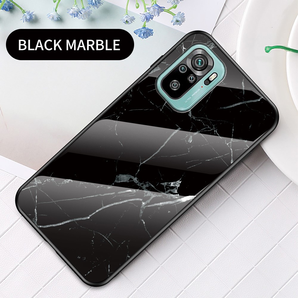 Θήκη Redmi Note 10 / 10S / Poco M5s OEM σχέδιο Marble με Πλάτη Tempered Glass TPU μαύρο