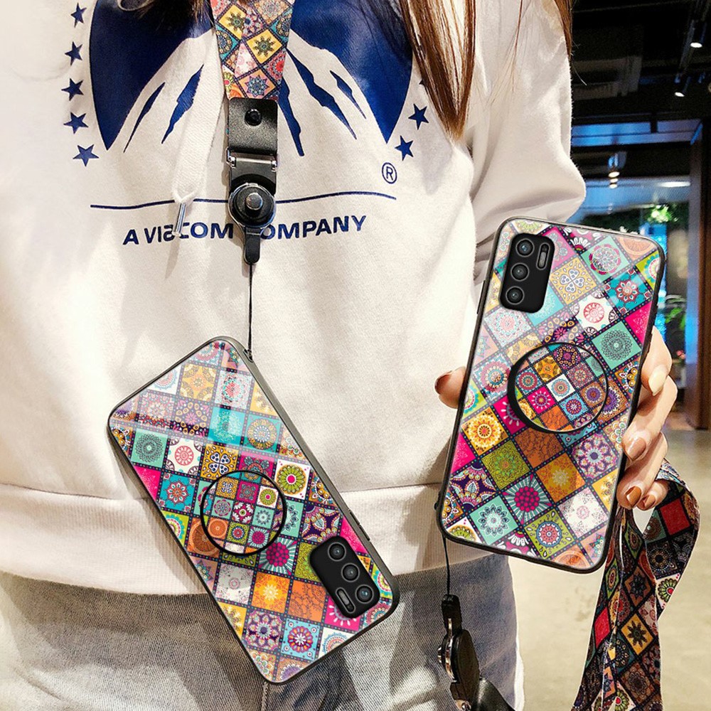 Θήκη Xiaomi Redmi Note 10 5G / Poco M3 Pro 5G OEM Colorful Flower Print Glass Hybrid Phone Case Protector with Lanyar 2