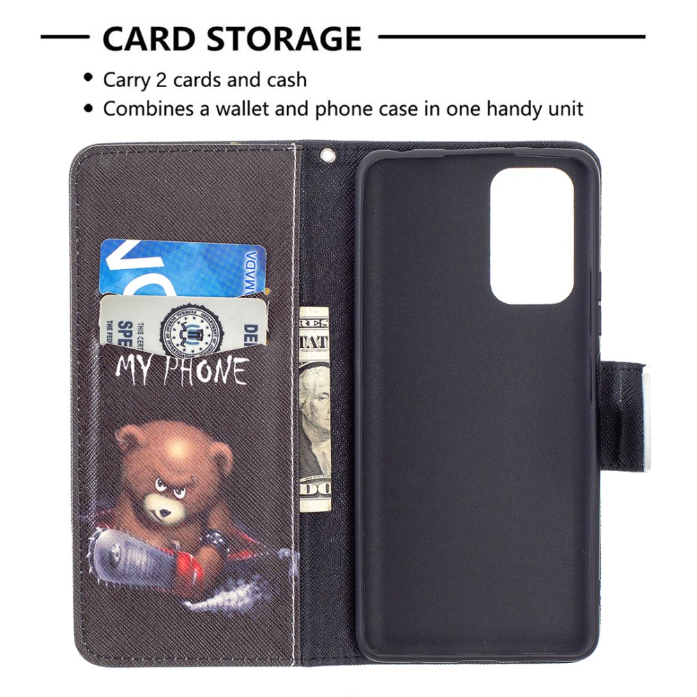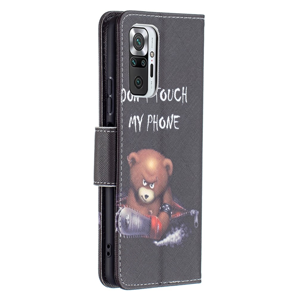 Θήκη Xiaomi Redmi Note 10 Pro OEM Angry bear with chainsaw με βάση στήριξης, υποδοχές καρτών και μαγνητικό κούμπωμα Flip Wallet από συνθετικό δέρμα και TPU