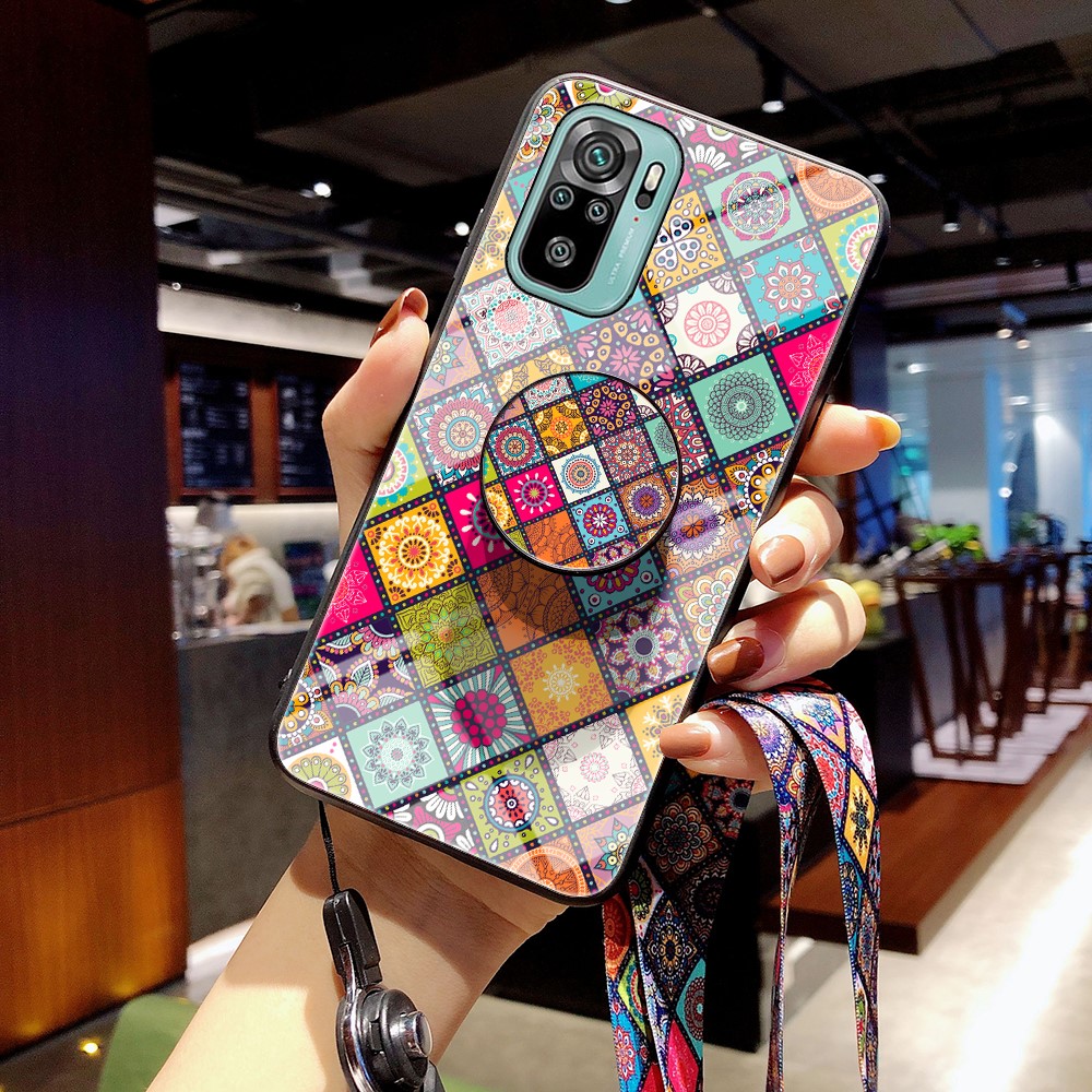 Θήκη Xiaomi Redmi Note 10 / 10S / Poco M5s OEM Colorful Flower Print Glass Hybrid Phone Case Protector with Lanyar 1