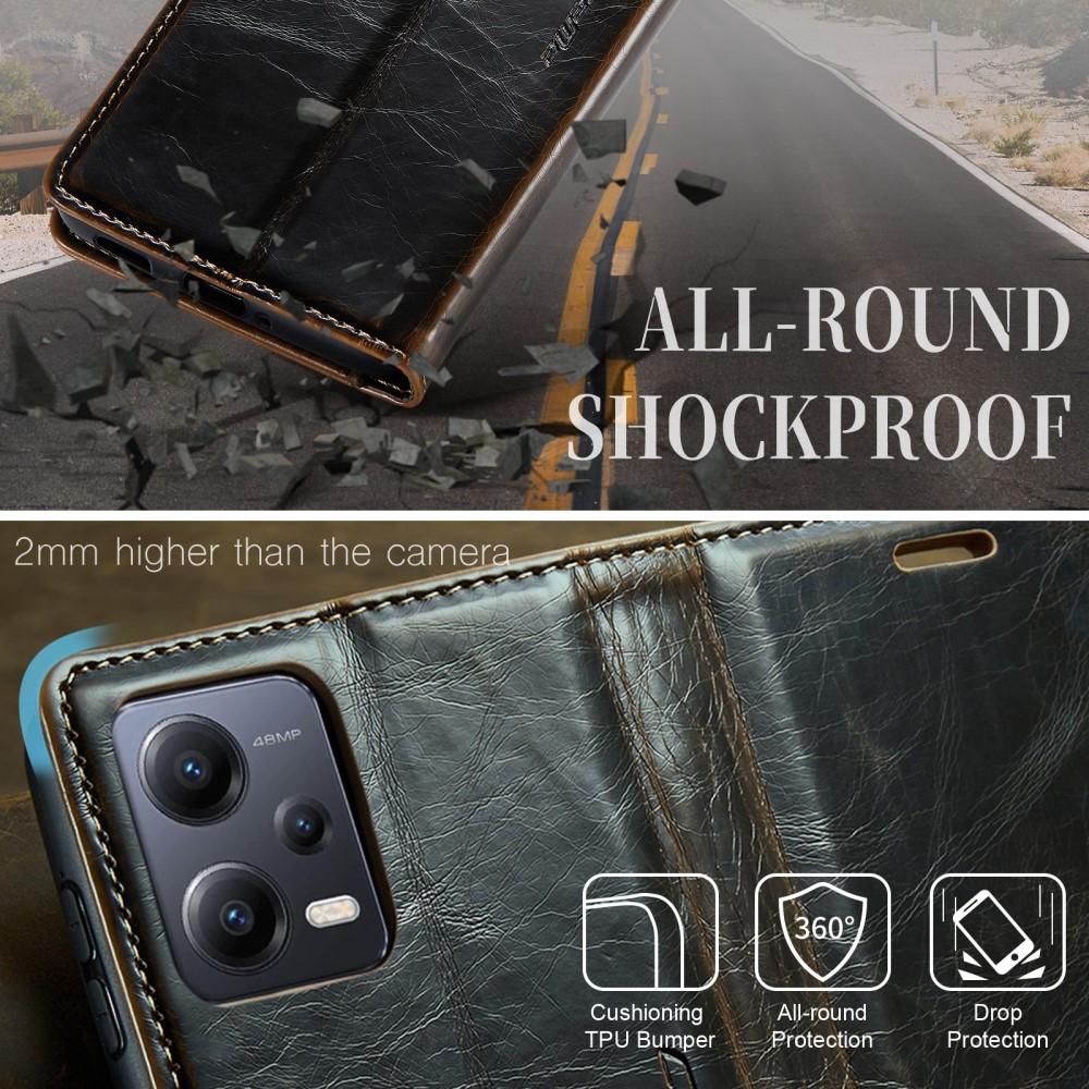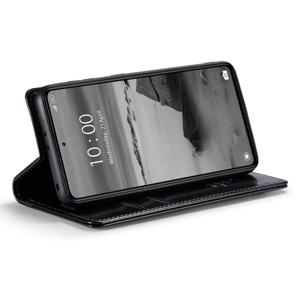 Θήκη Xiaomi Redmi Note 12 Pro+ CaseMe 003 Series Πορτοφόλι με βάση στήριξης, υποδοχές καρτών και μαγνητικό κούμπωμα από συνθετικό δέρμα και TPU μαύρο