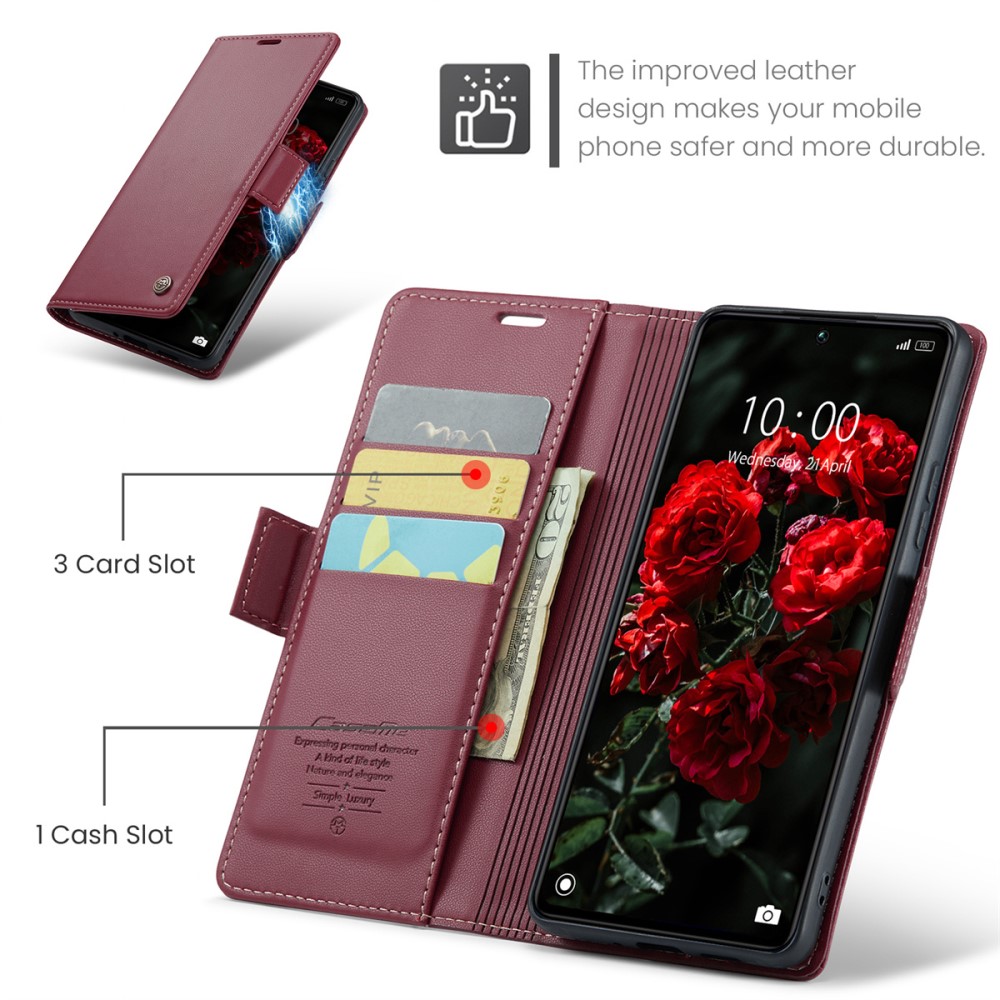 Θήκη Xiaomi Redmi Note 13 Pro 5G / Poco X6 5G CASEME 023 Series Πορτοφόλι με βάση στήριξης, υποδοχές καρτών και μαγνητικό κούμπωμα από συνθετικό δέρμα και TPU κόκκινο