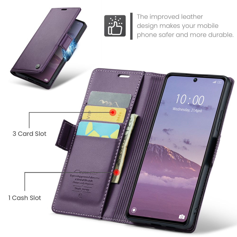 Θήκη Xiaomi Redmi Note 13 Pro 5G / Poco X6 5G CASEME 023 Series Πορτοφόλι με βάση στήριξης, υποδοχές καρτών και μαγνητικό κούμπωμα από συνθετικό δέρμα και TPU μωβ