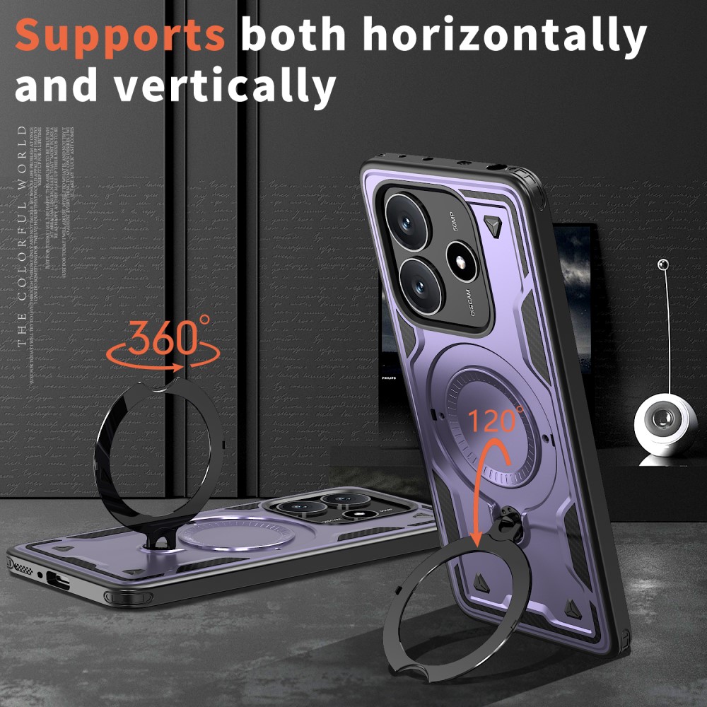 Θήκη Xiaomi Redmi Note 14 5G Mad Mask Πλάτη Military Protection με Μαγνητικό δαχτυλίδι ,συμβατό με ασύρματη φόρτιση Magsafe και Βάση στήριξης TPU μωβ