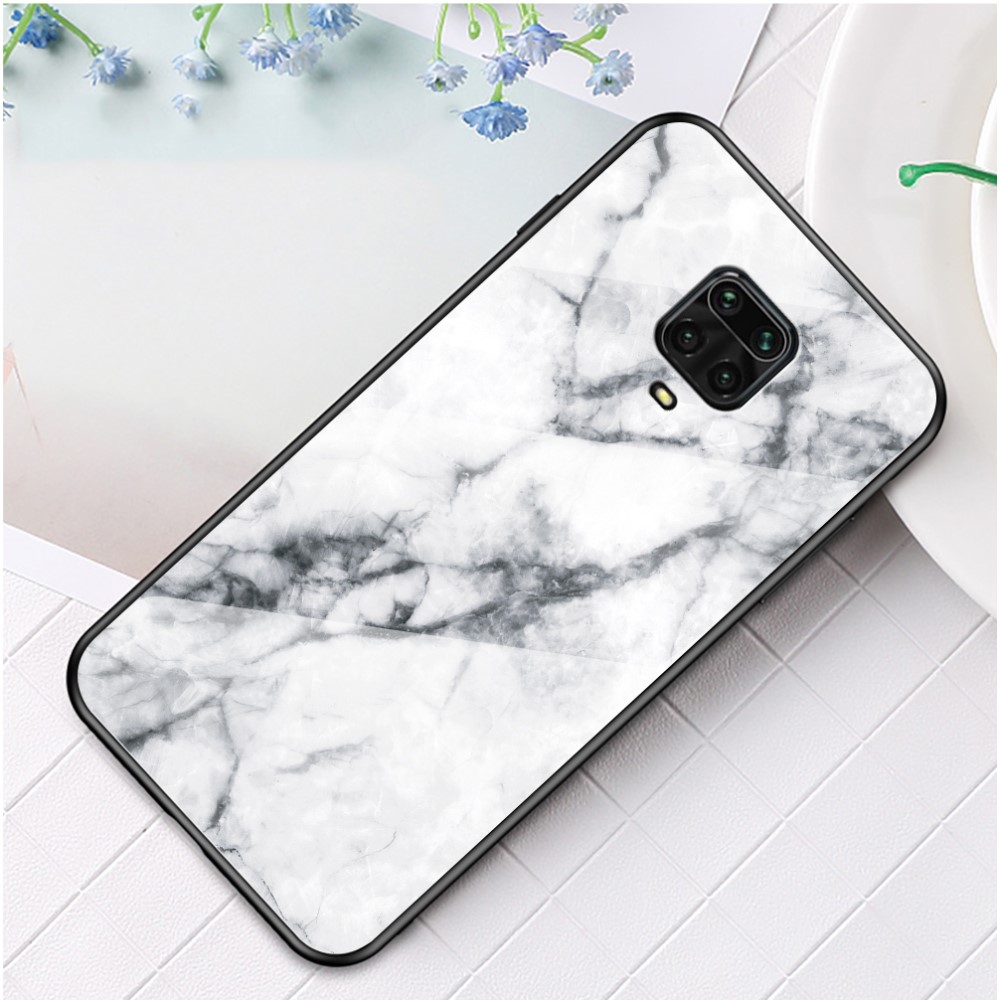 Θήκη Xiaomi Redmi Note 9S / Note 9 Pro / Note 9 Pro Max OEM σχέδιο Marble με Πλάτη Tempered Glass TPU λευκό