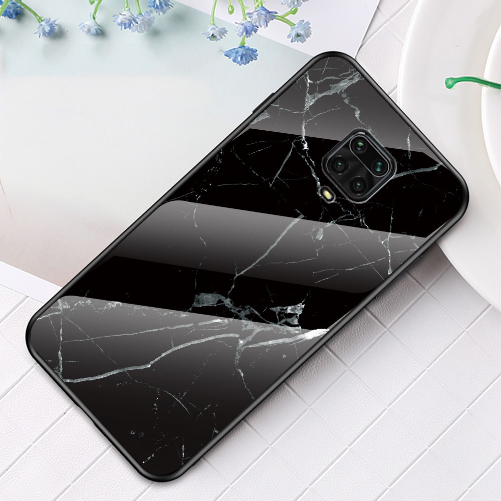 Θήκη Xiaomi Redmi Note 9S / Note 9 Pro / Note 9 Pro Max OEM σχέδιο Marble με Πλάτη Tempered Glass TPU μαύρο