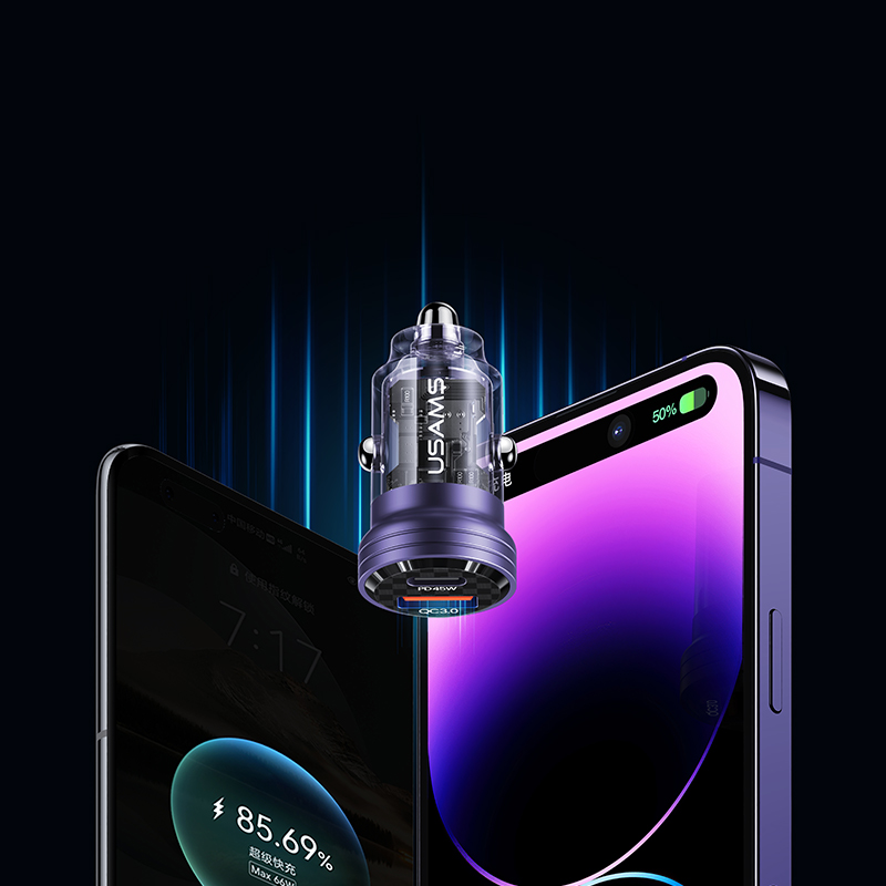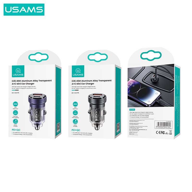 Ο φορτιστής αυτοκινήτου USAMS CC 715 παρέχει υψηλή ισχύ έως και 45W, επιτρέποντας τη γρήγορη φόρτιση ψηφιακών συσκευών. Υποστηρίζει τα πρωτόκολλα PD και QC, προσφέροντας δυνατότητα φόρτισης δύο τηλεφώνων ταυτόχρονα. Με πιστοποίηση CE, εξασφαλίζει γρήγορη και ασφαλή φόρτιση. Ο διαφανής σχεδιασμός του τον καθιστά μίνι και φορητό.